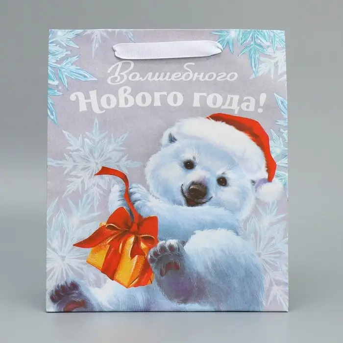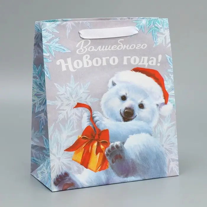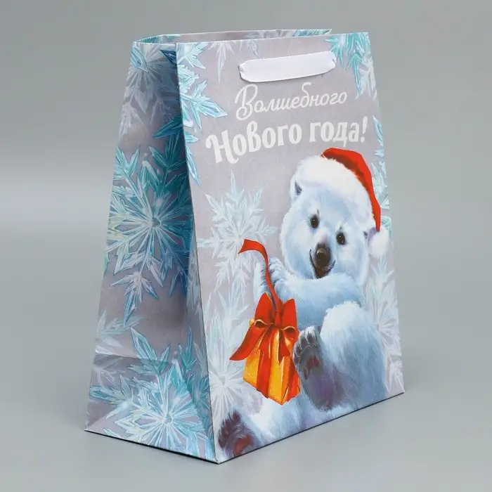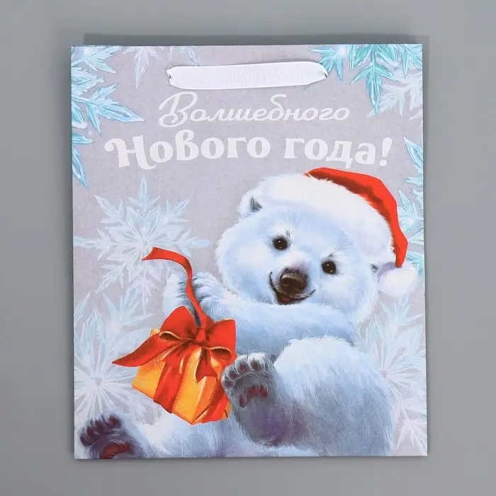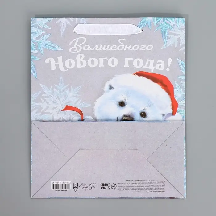 Пакет подарочный новогодний крафтовый «Мишутка», ML 23 х 27 х 11.5 см