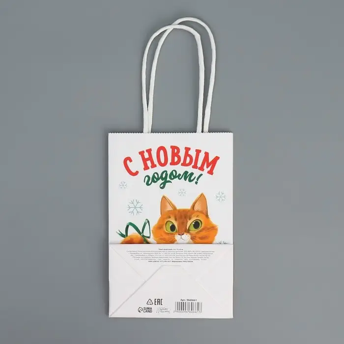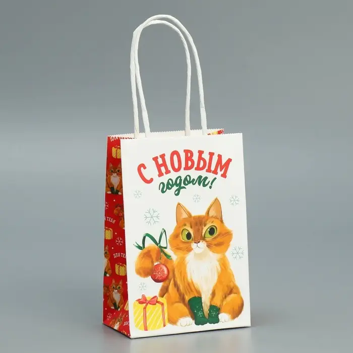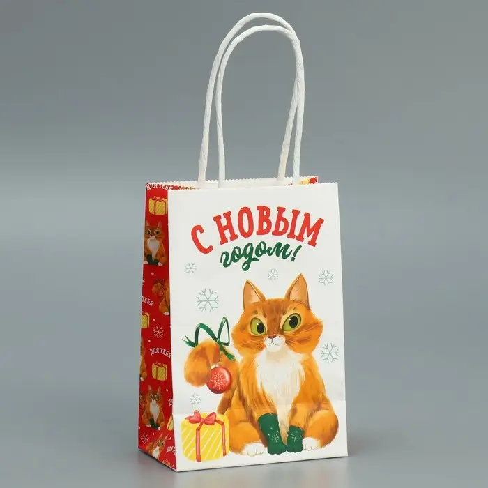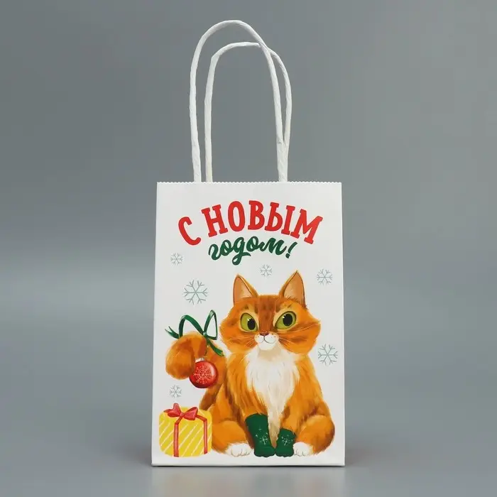 Пакет подарочный новогодний крафтовый «С Новым годом», 15 х 10 х 6 см