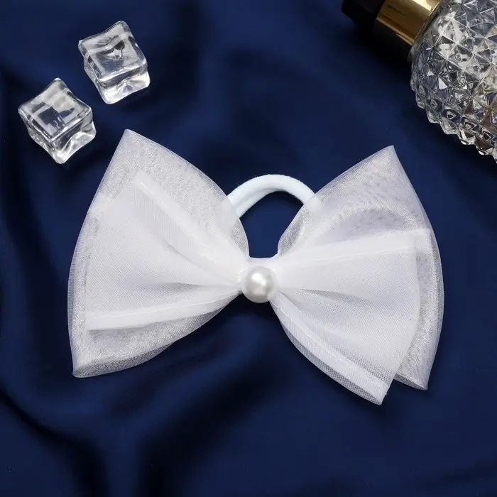 Резинка для волос бант "Школьница" классика бусинка, 11х7 см, белый