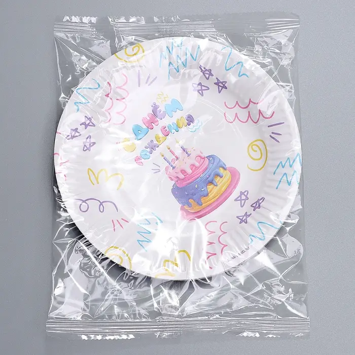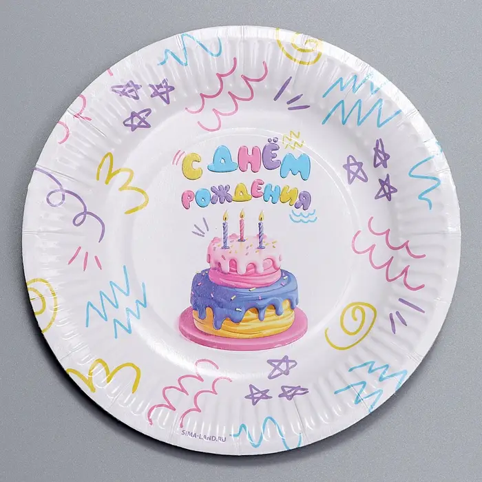 Тарелка одноразовая бумажная «С днём рождения» тортик, 18 см