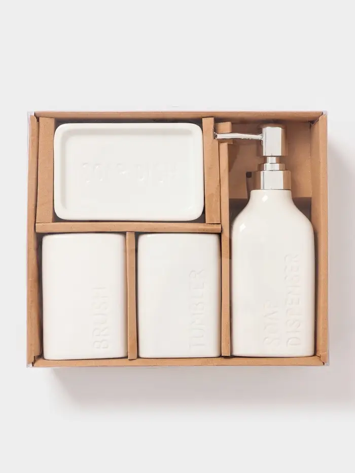 Набор для ванной "Кристаль", 4 предмета (дозатор для мыла, 2 стакана, мыльница)