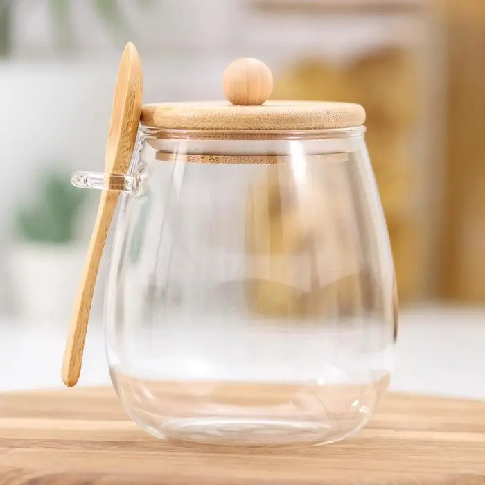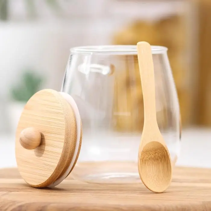 Сахарница BellaTenero «Эко» с ложкой, 650 мл, 10.5×10×13.5 см, с бамбуковой крышкой, стекло, прозрачная