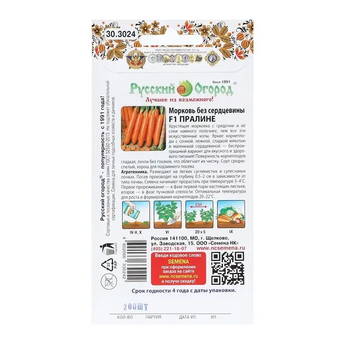Семена Морковь "Пралине", 200 шт.