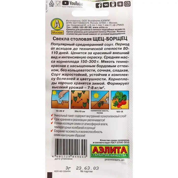 Семена Свекла столовая "Щец-борщец", ц/п, 3 г