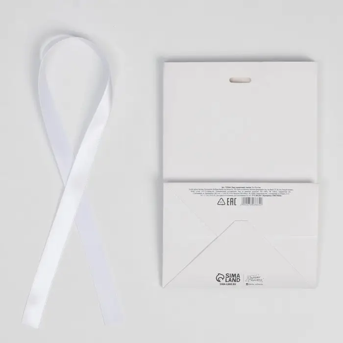 Пакет подарочный с лентой, упаковка, «Белый», 13 х 19 х 9 см