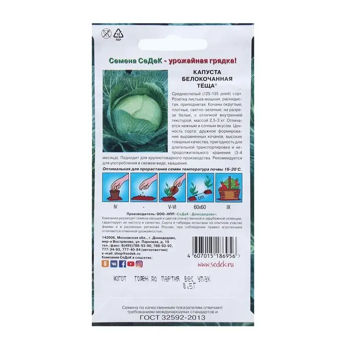 Семена Капусты белокочанной "Тёща "F1 0.5 г