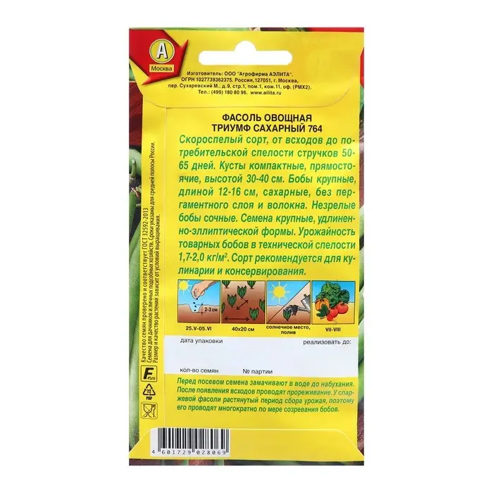 Семена Фасоль овощная "Триумф сахарный 764", скороспелая, 5 г