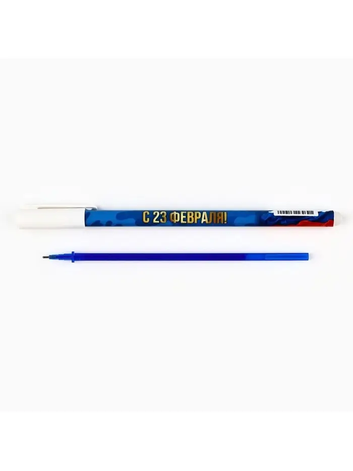 Ручка пластик пиши-стирай с колпачком "С 23 февраля", синяя паста, гелевая 0,5 мм