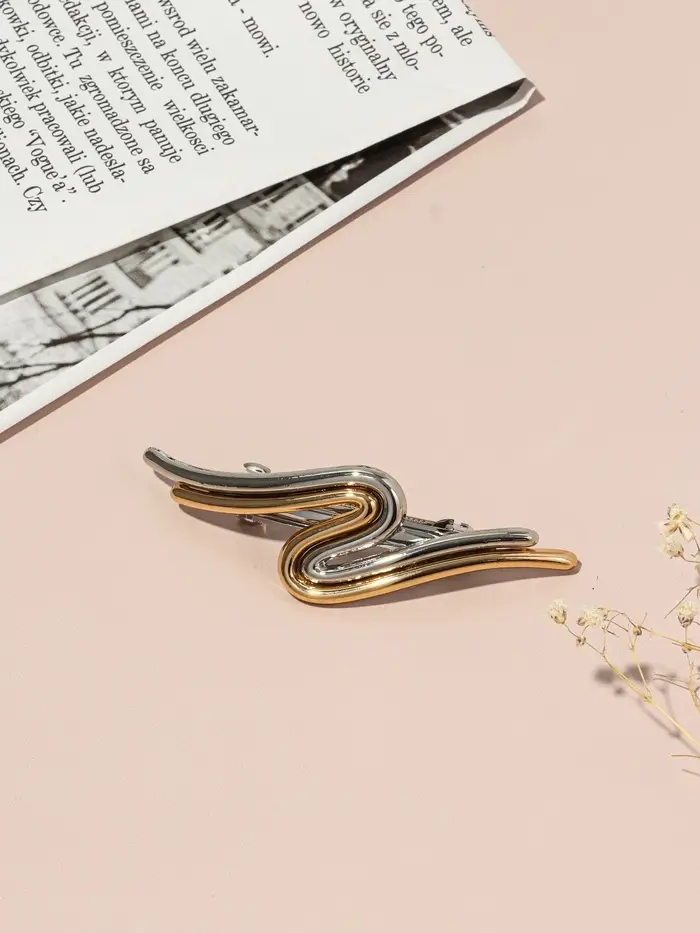 Заколка - автомат для волос «Андри», изгиб, 9 см, серебристо-золотой