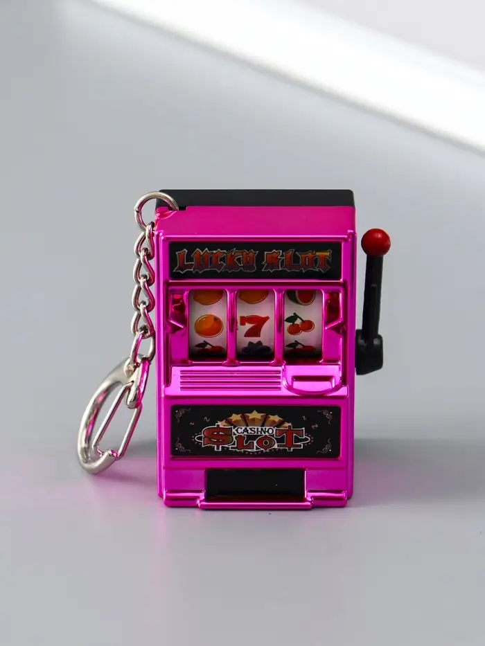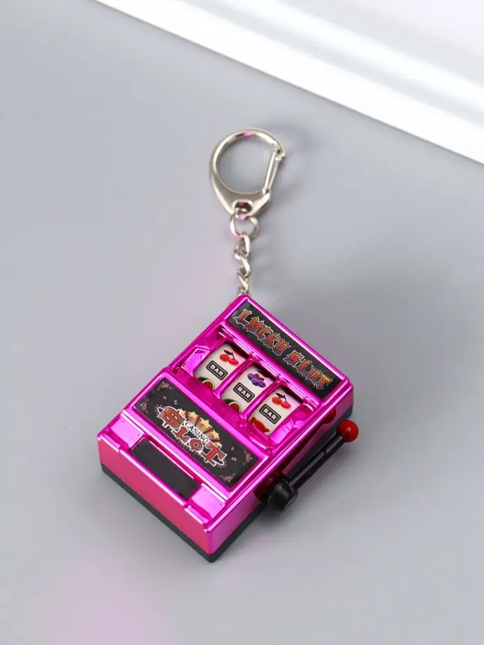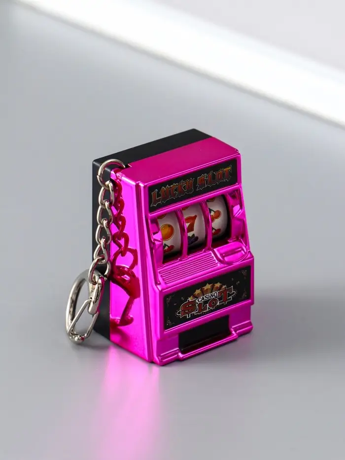 Брелок пластик "Игровой автомат - казино" фуксия 2,7х3,4х5 см