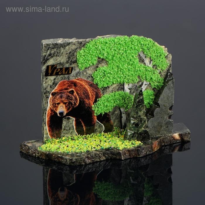 Сувенир-скол "Мишка", змеевик, каменная крошка, большой, микс