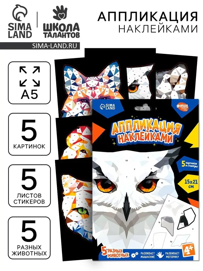 Аппликация наклейками "Полигональные звери"