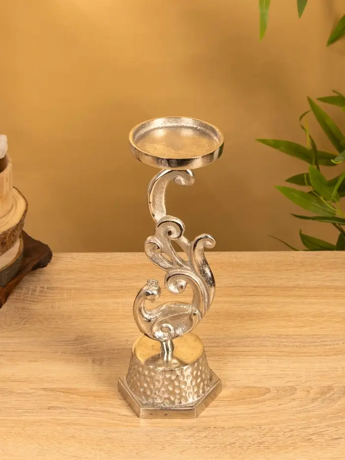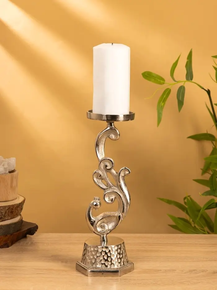 Подсвечник "Жар-птица" 11х11х30 см, алюминий, цв. серебро