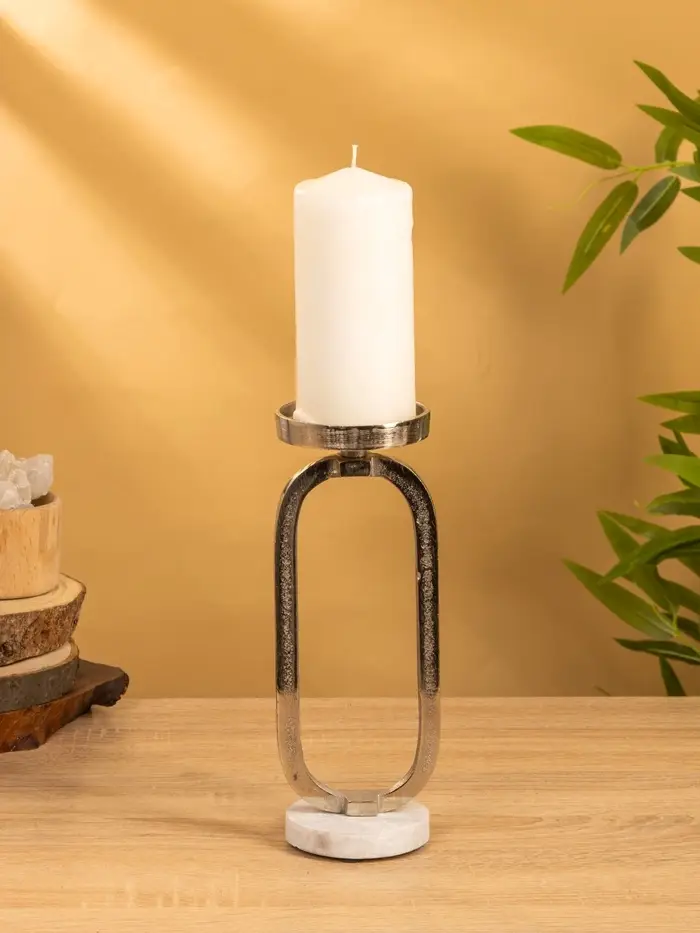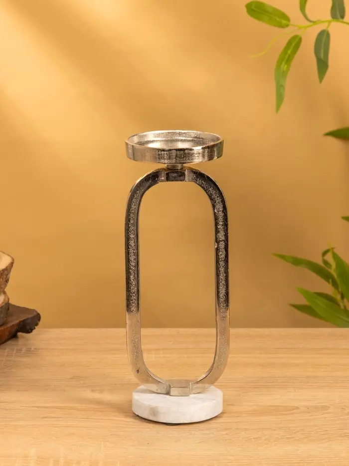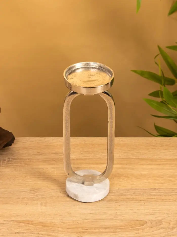 Подсвечник "Эллипс" 9х8,5х24,5 см, d 7,5 см, алюминий, мрамор
