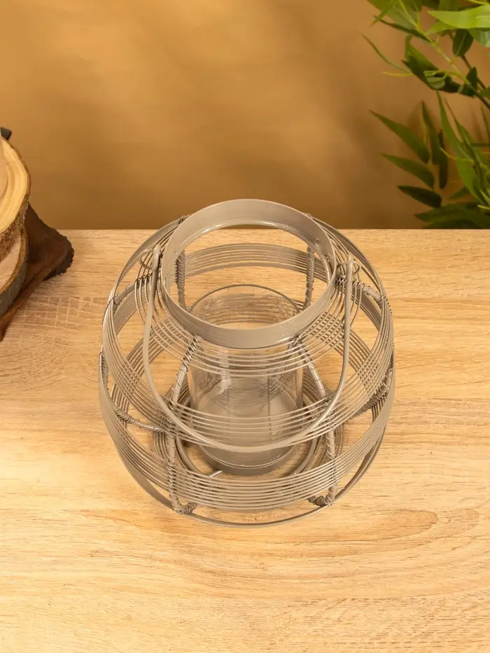 Подсвечник фонарь со стеклянной колбой 19х19х18 см, d 7,5 см, металл, цв. серый