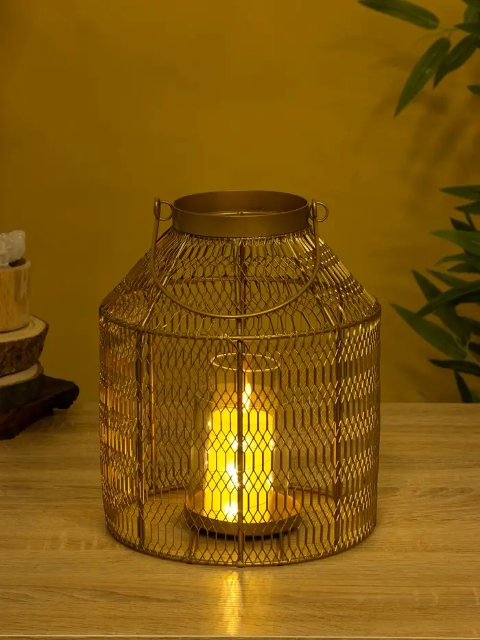 Подсвечник фонарь со стеклянной колбой 20х20х26 см, d 9 см, металл, цв. золото