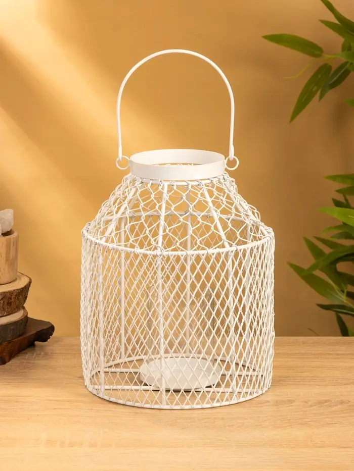 Подсвечник фонарь со стеклянной колбой 20х20х26 см, d 10 см, металл, цв. белый