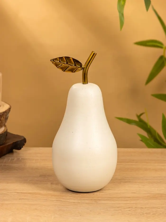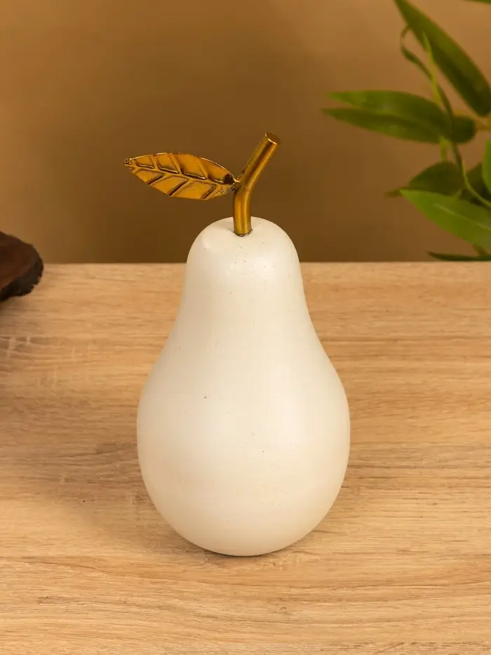 Сувенир "Груша с золотым листом" 10х10х21 см, цв. матовый белый