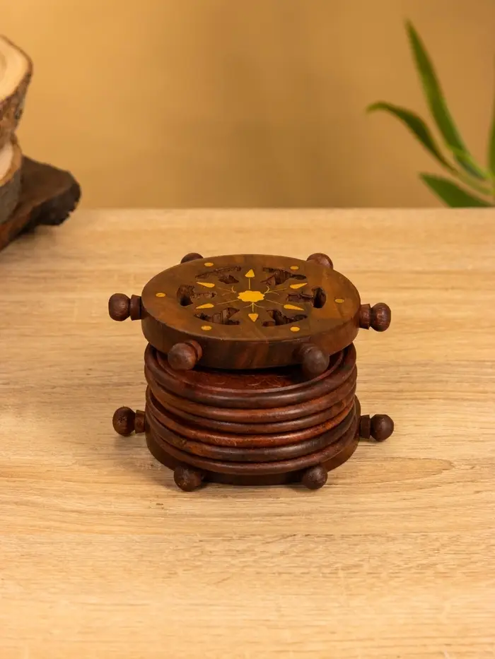 Подставка под горячее "Штурвал" (набор 6 шт), 12х11,5х6,8 см, дерево шишам