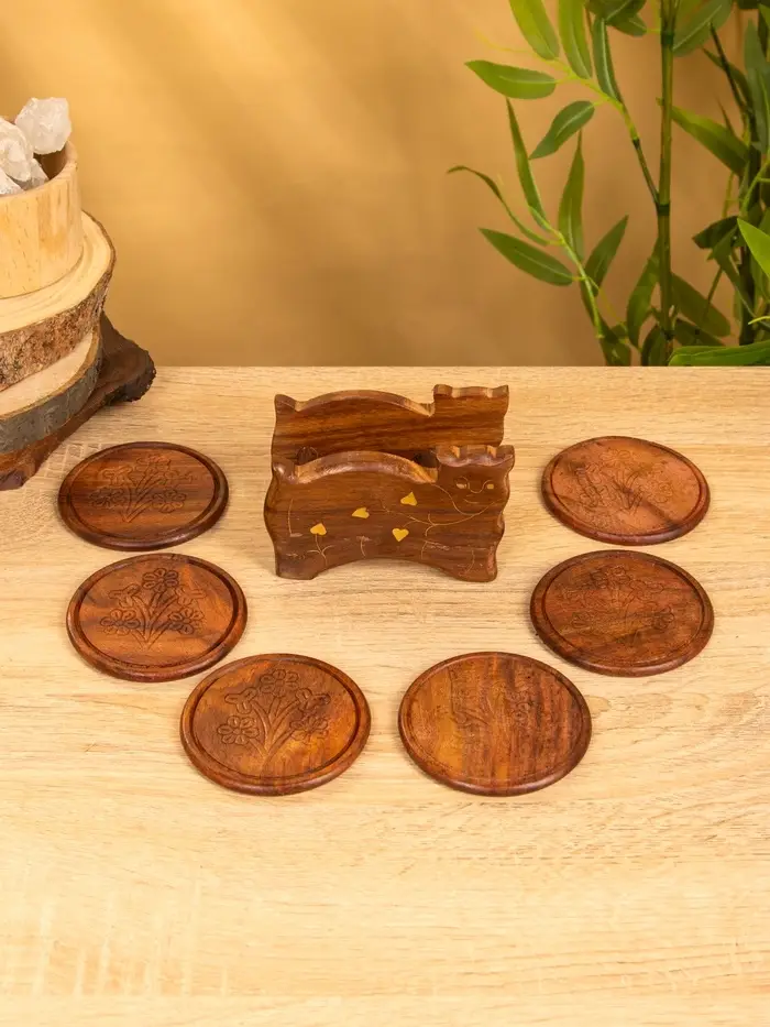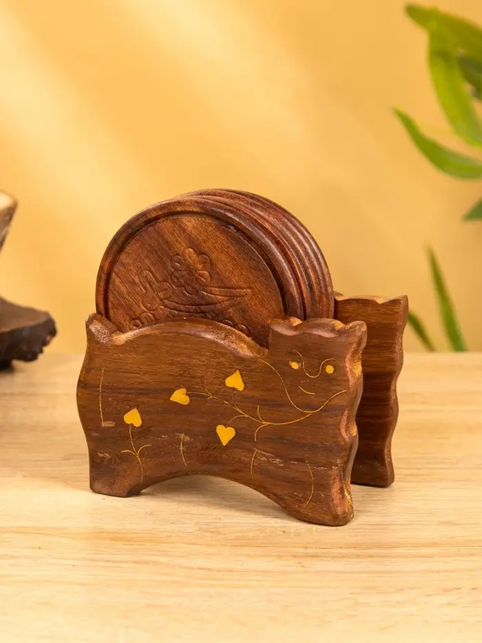 Подставка под горячее "Кошка" (набор 6 шт), 11,5х13х6,5 см, дерево шишам