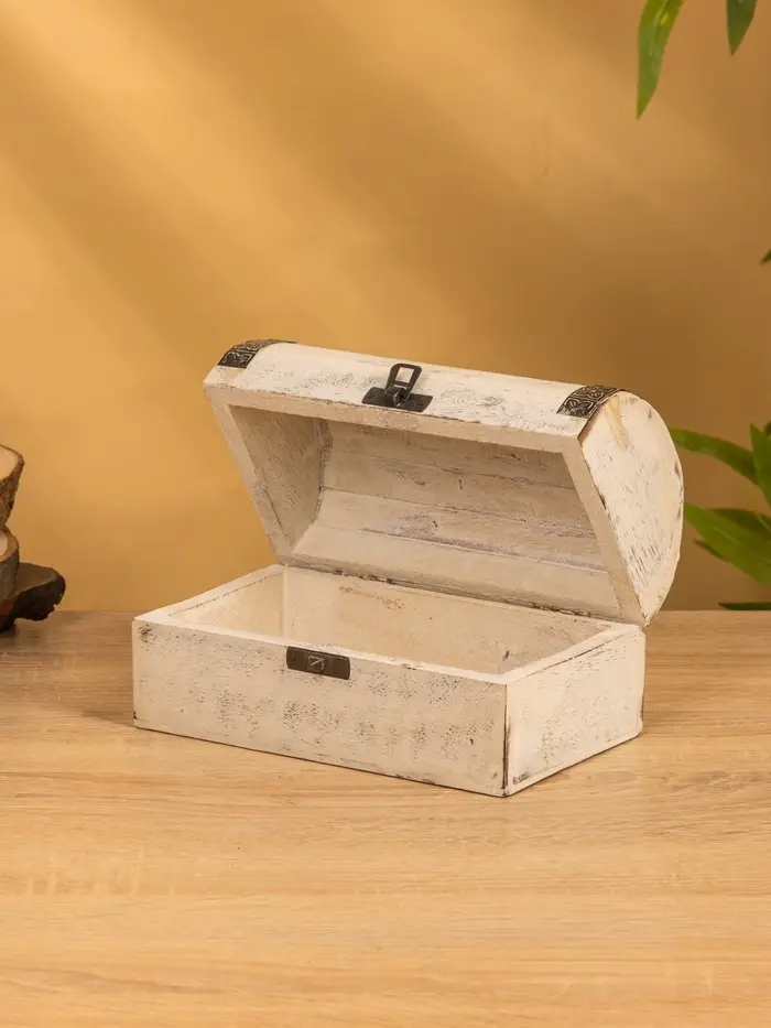 Сундучок "Солнце ацтеков" 19х12х11 см, манговое дерево, белый антик