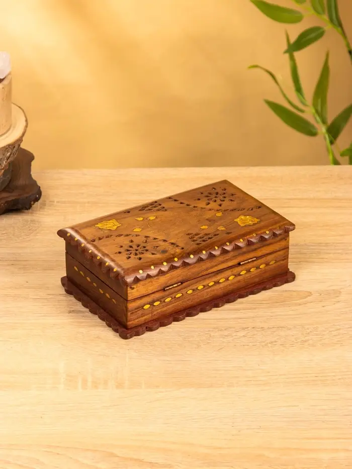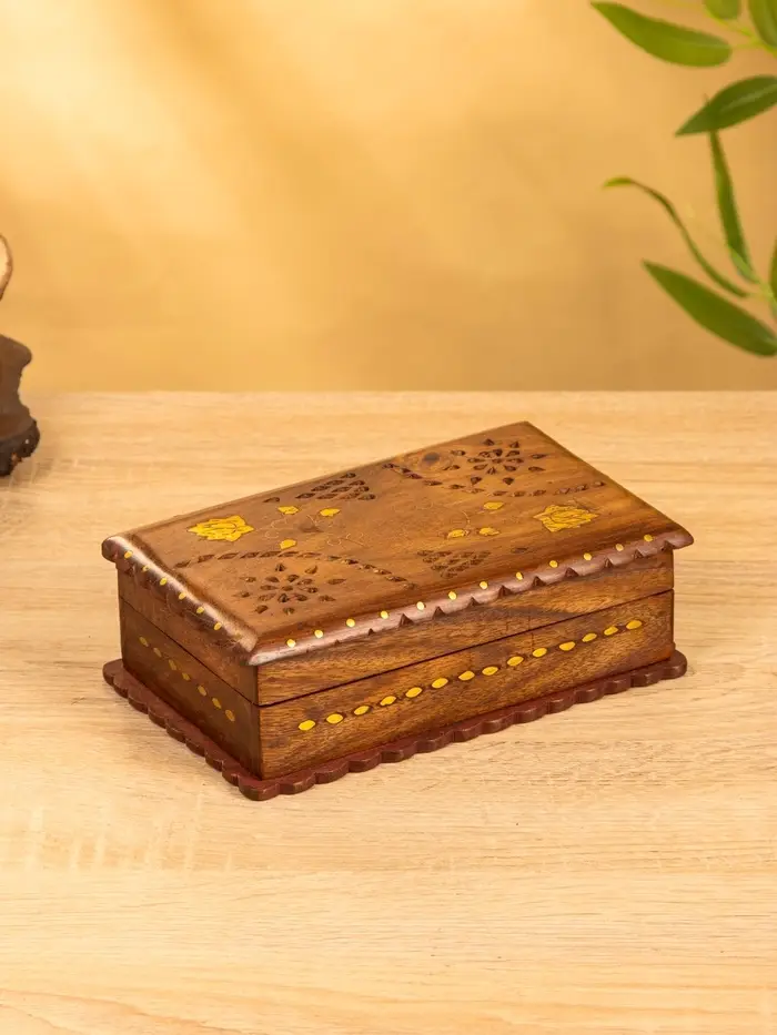 Шкатулка резная "Флористика" 20х12,5х6,5 см, дерево шишам