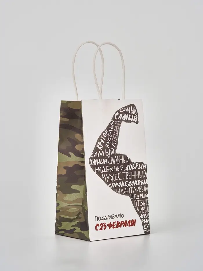 Пакет подарочный крафт «С 23 февраля», 12 × 21 × 9 см