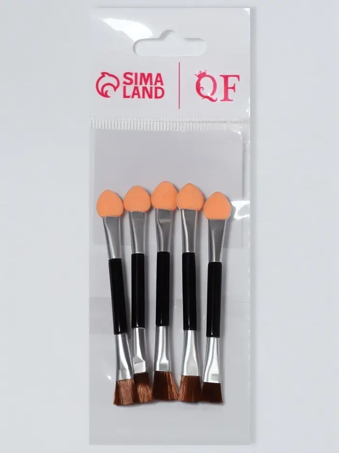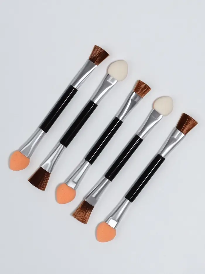 Набор аппликаторов для теней, с кистью, двусторонние, 5 шт, 7,5 см, цвет чёрный/серебристый