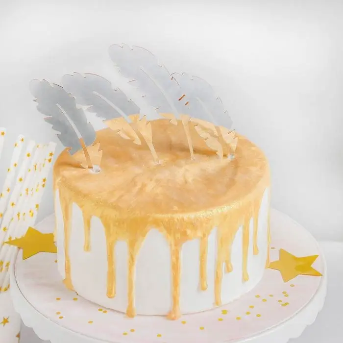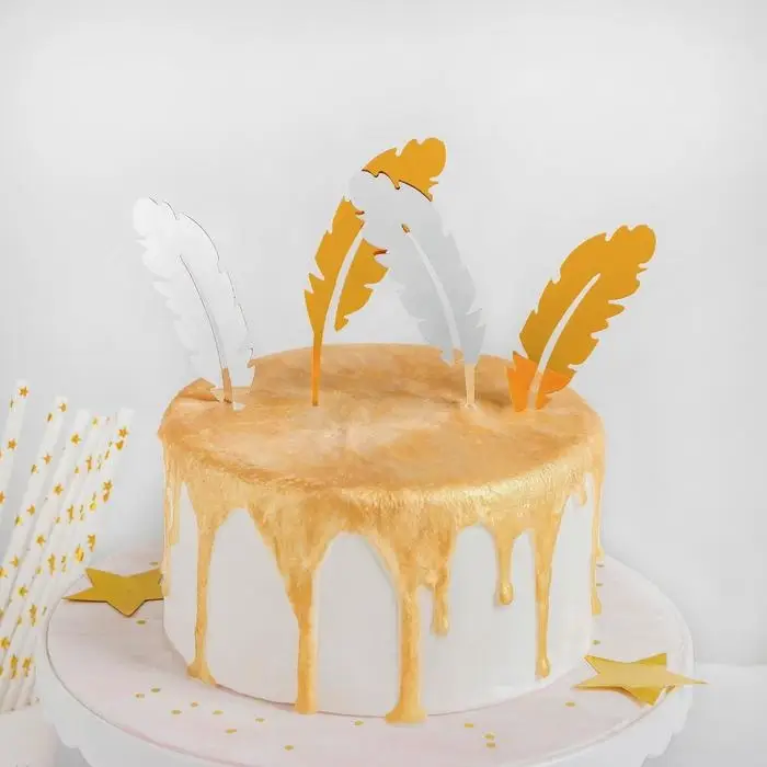 Эти стильные аксессуары с универсальным дизайном подойдут для любого мероприятия — будь то день рождения, свадьба или юбилей. Их изящная форма в виде пера добавляет воздушности и утончённости декору, подчёркивая уникальность вашего торта.