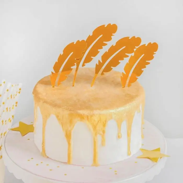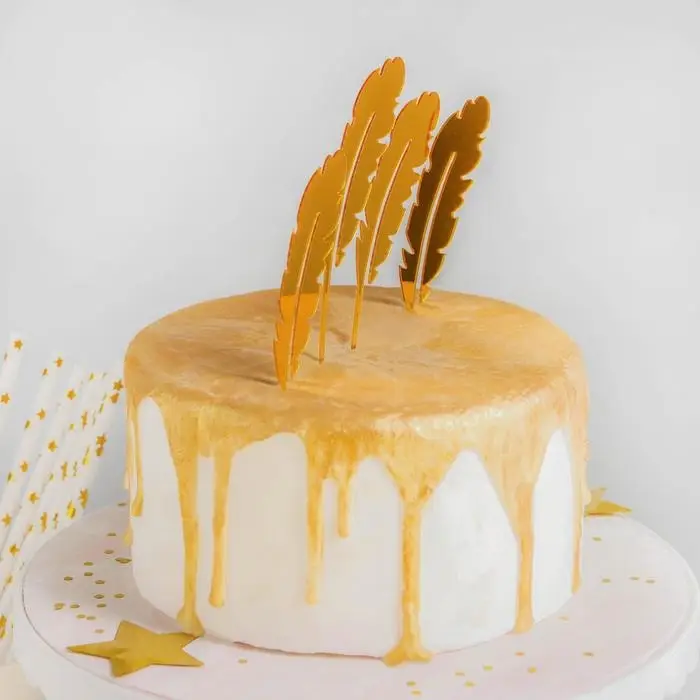 - Элегантный дизайн: изящные золотистые перья придают торту изысканный и роскошный вид.