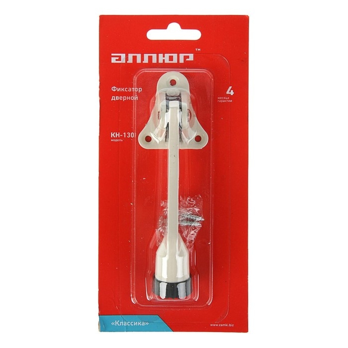 Фиксатор дверной "АЛЛЮР" КН-130 WW, "козья ножка", белый