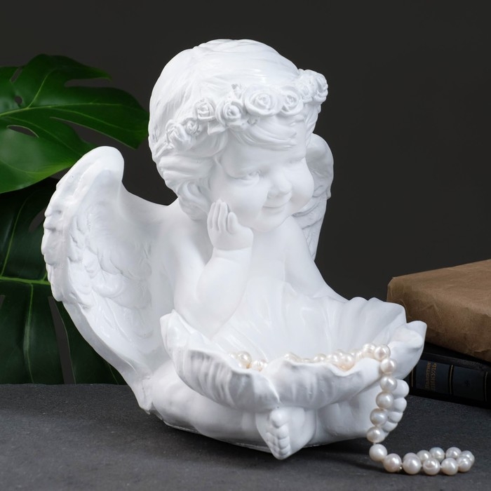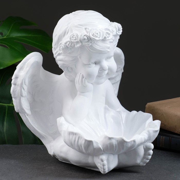 Фигура - подсвечник "Ангел с кувшинкой" 23х23х27см белый