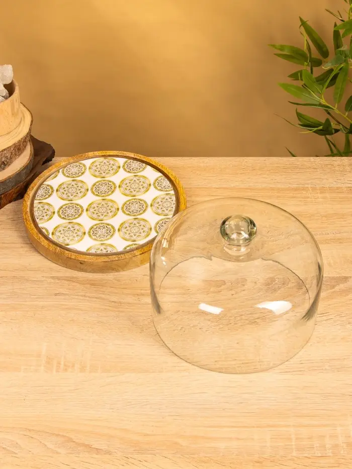 Блюдо сервировочное с крышкой 24х24х13 см, дерево, стекло
