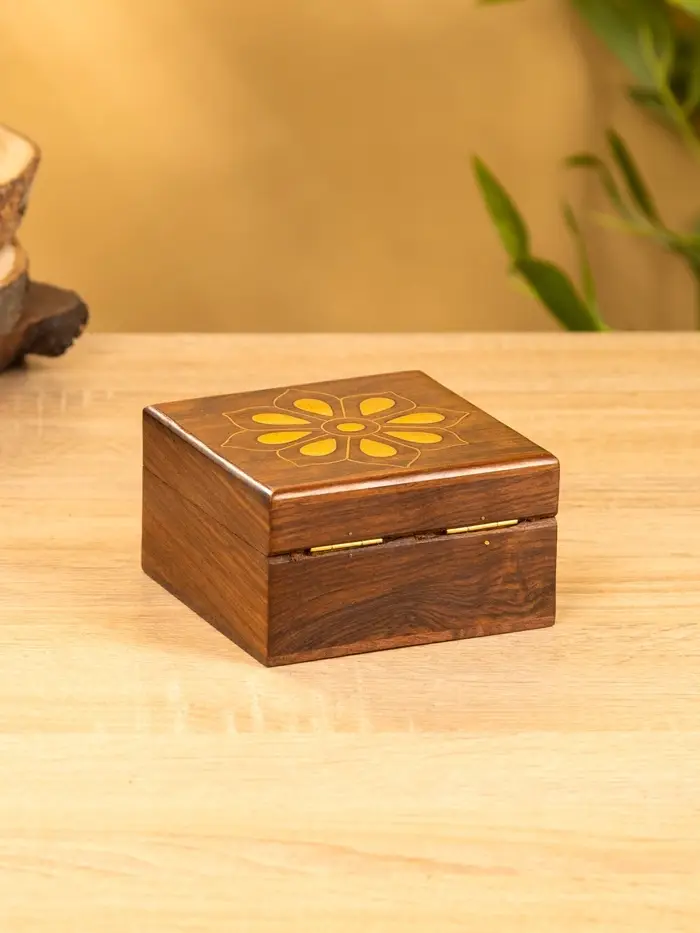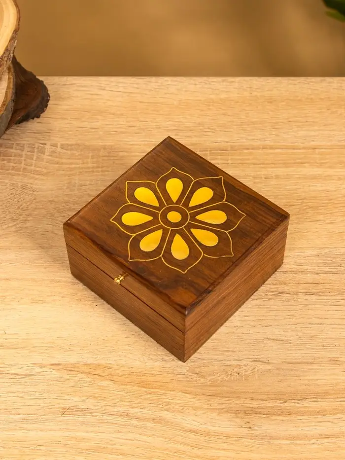 Шкатулка "Цветок" 10х10х6 см, дерево шишам
