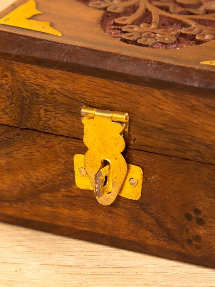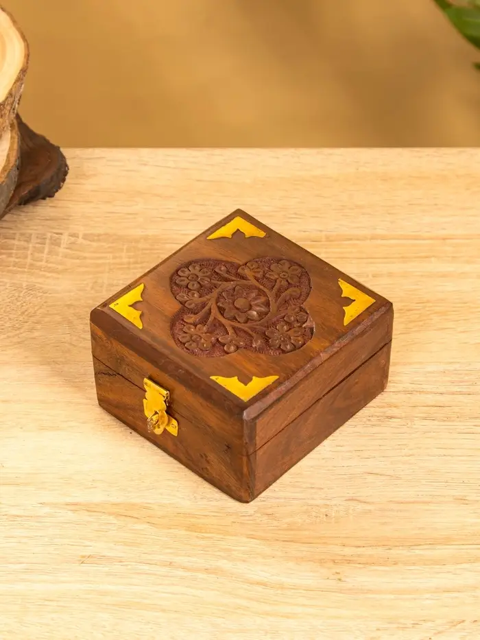 Шкатулка квадратная с замочком латунь 10х10х6 см, дерево шишам