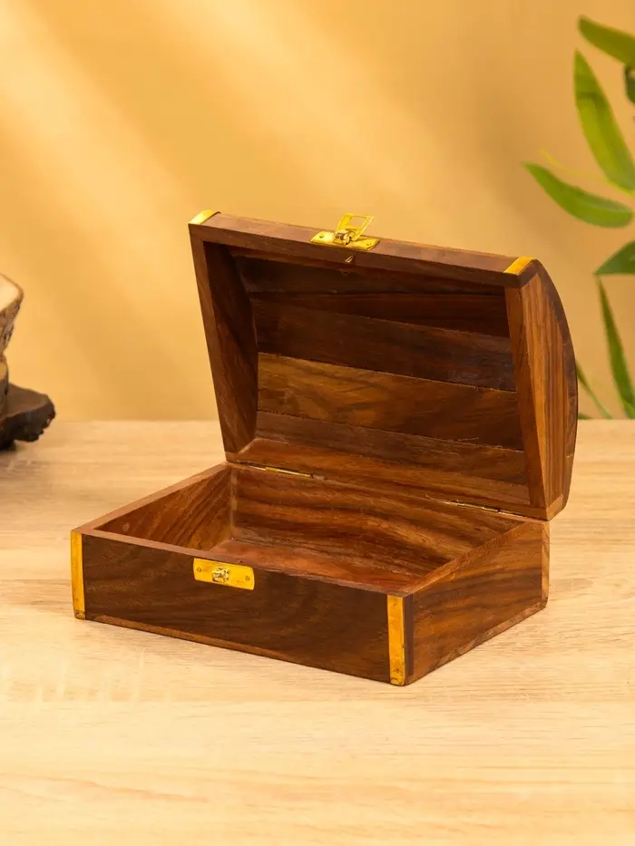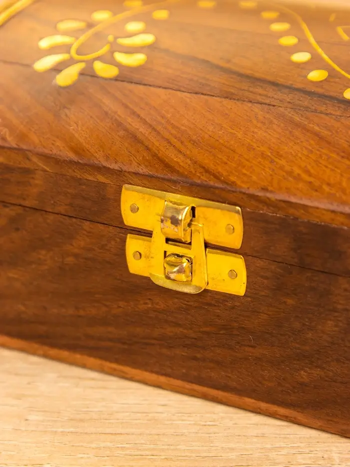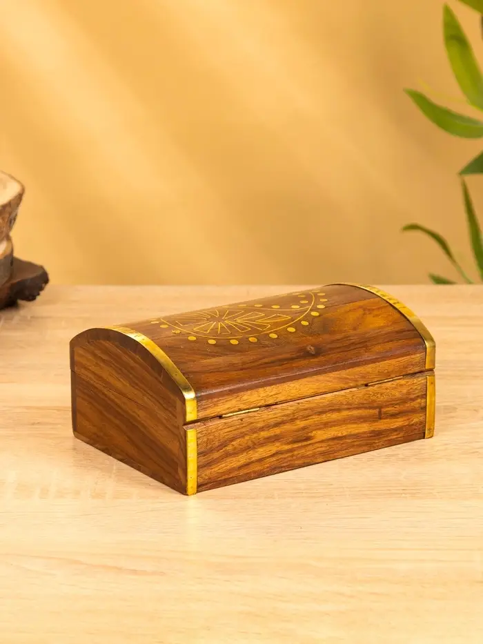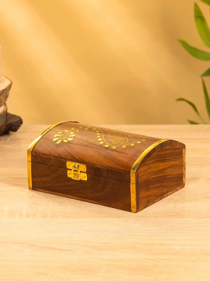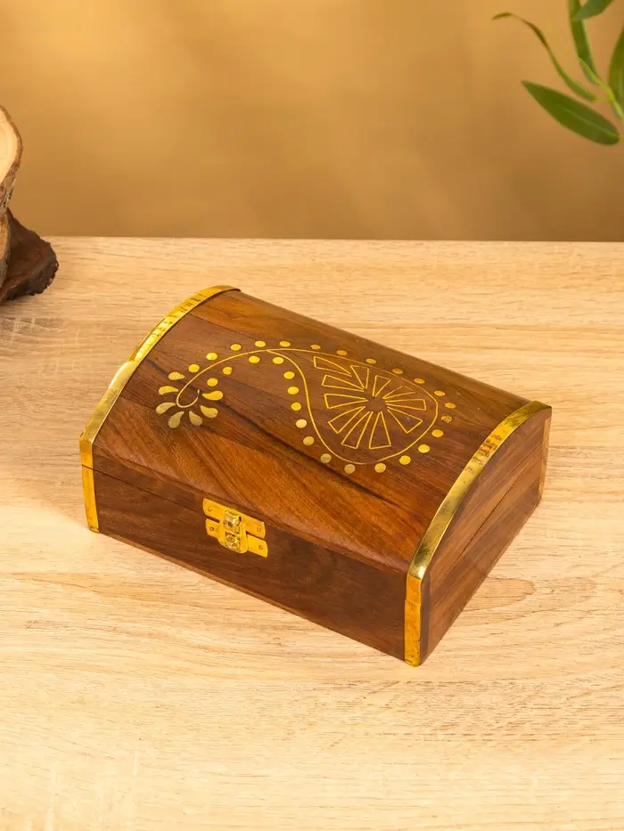 Шкатулка "Глу" 18х12,8х8 см, дерево шишам, латунь