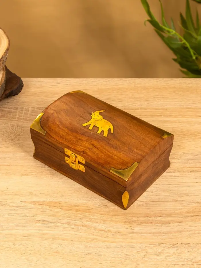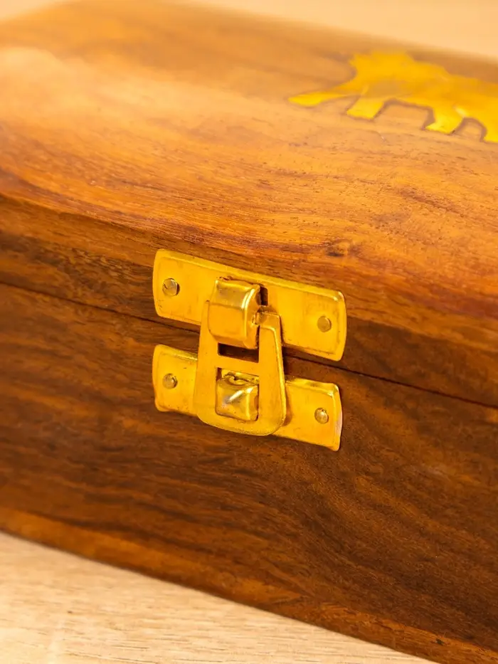 Шкатулка "Слон" 15,5х10х7 см, дерево шишам, латунь