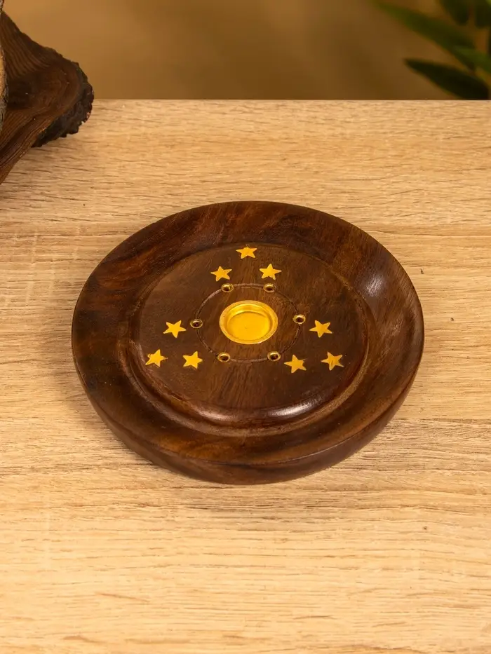 Подставка под благовония круглая "Звёзды" 12,5х12,5х2 см, дерево шишам