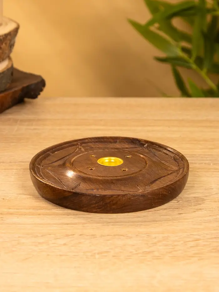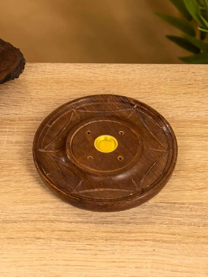 Подставка под благовония круглая, 12.5×12.5×1.5 см, дерево шишам