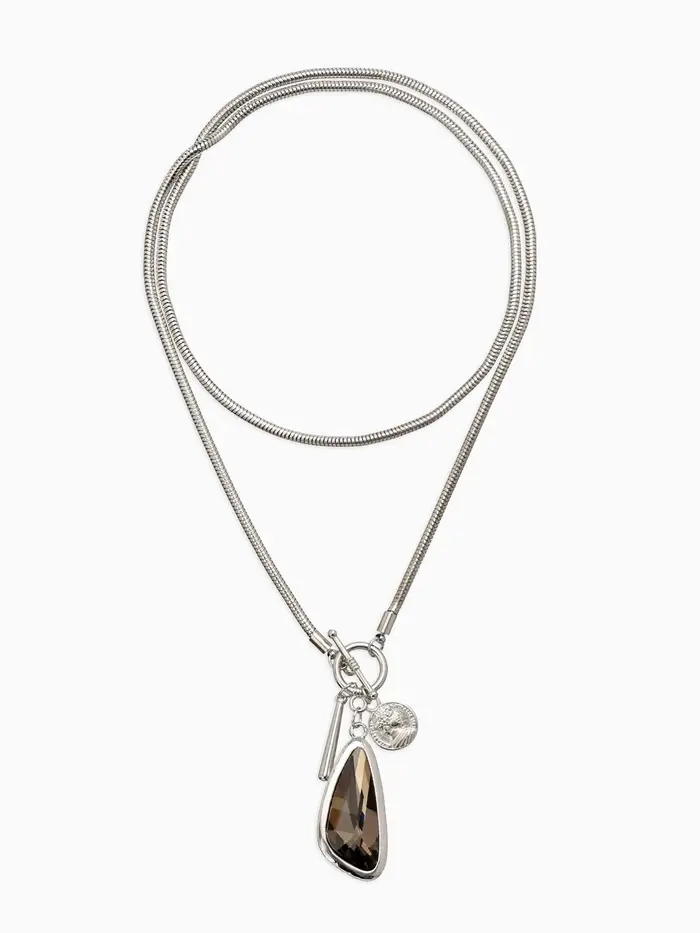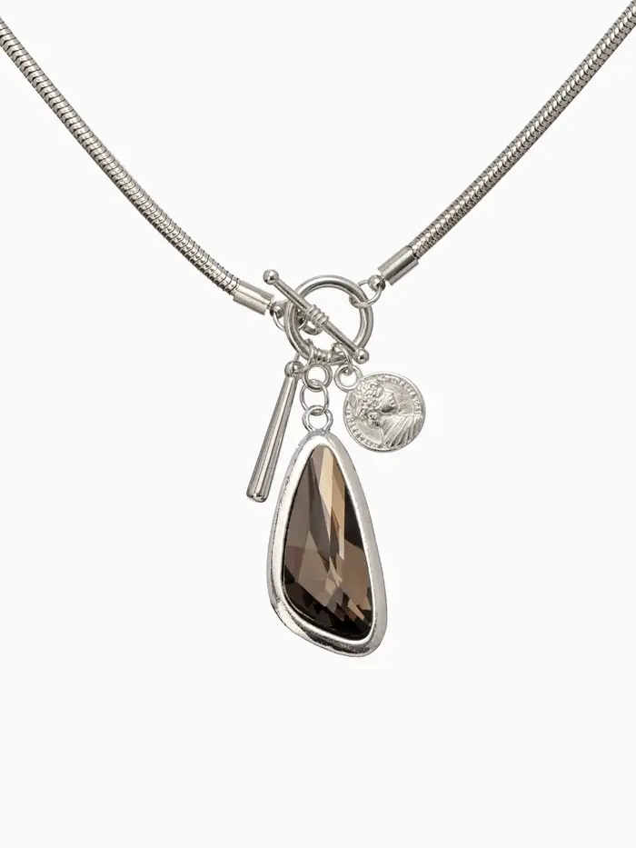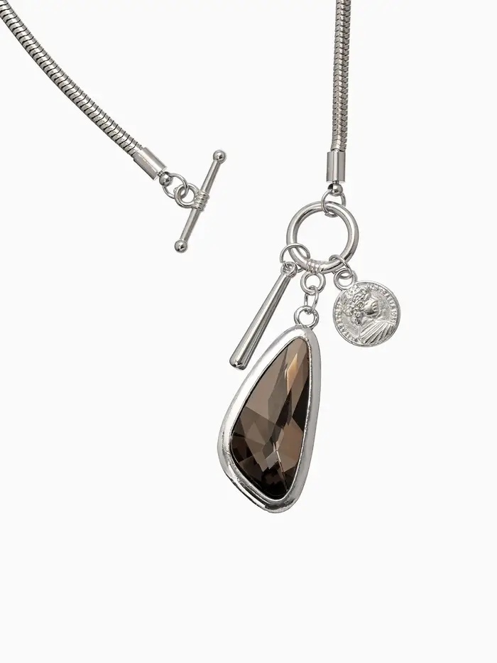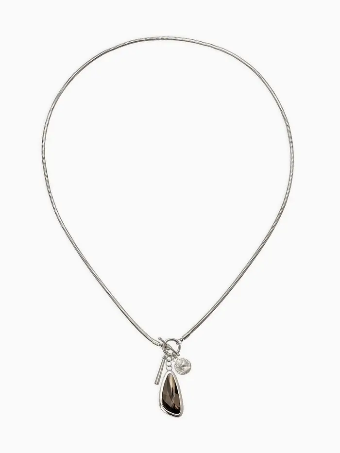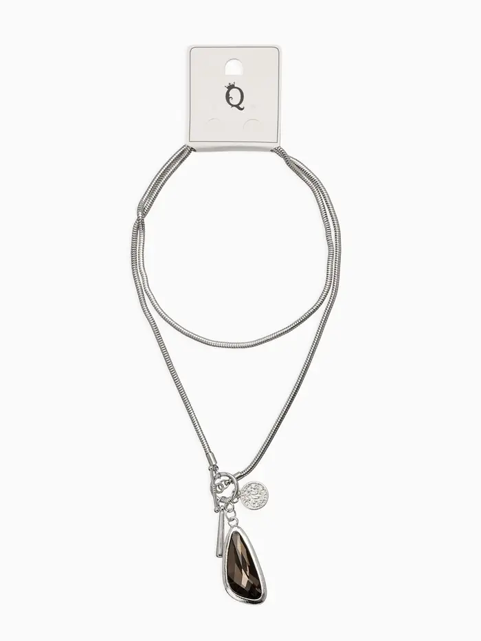 Кулон на цепочке "Стиль" капля, цвет серый в серебре