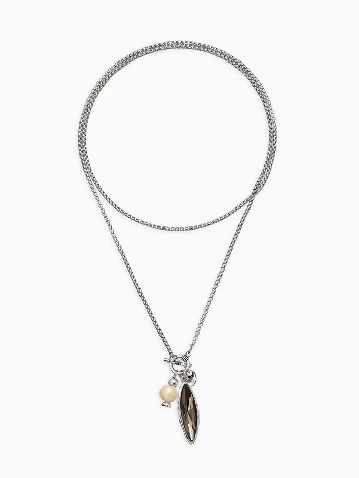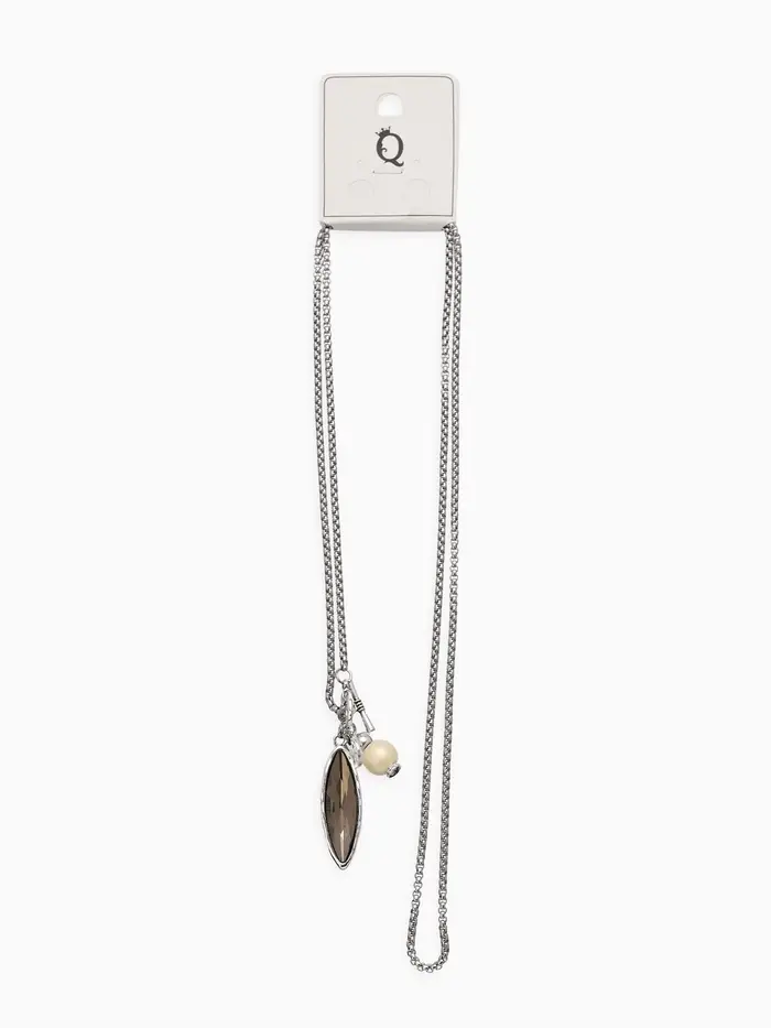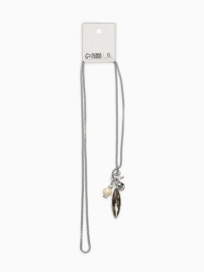 Кулон на цепочке "Стиль" эллипс, цвет серый в серебре