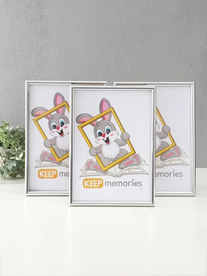 Фоторамка "Радуга" 21х30 см, с подножкой, набор 3 шт, (пластиковый экран), серебро