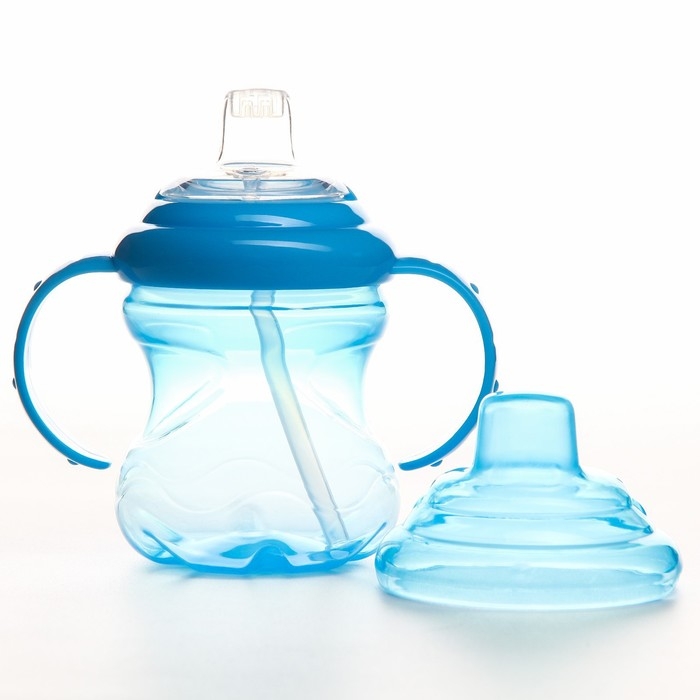 Поильник - непроливайка детский с мягким носиком, 240 мл., с ручками, цвет голубой