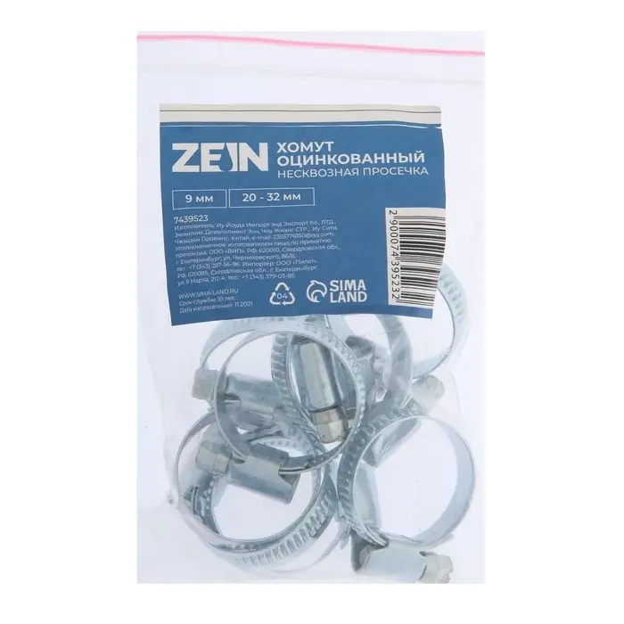 Хомут червячный ZEIN engr, несквозная просечка, диаметр 20-32 мм, ширина 9 мм, оцинкованный