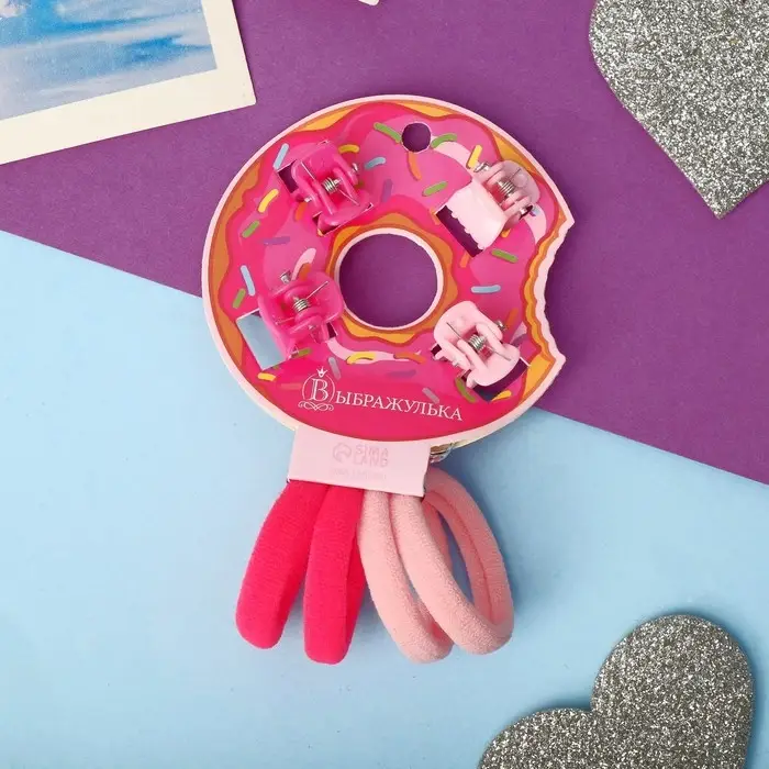 Набор для волос "Маленькая радость" (4 резинки, 4 краба) пончик, розовый