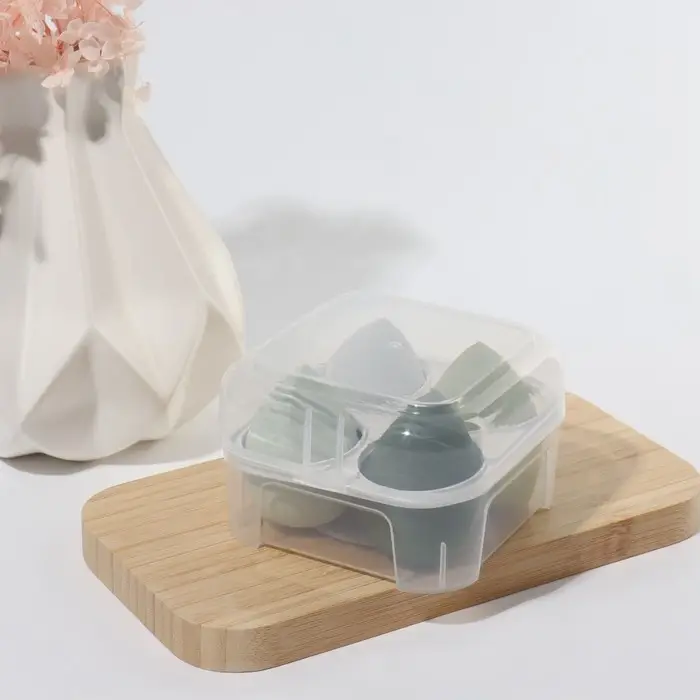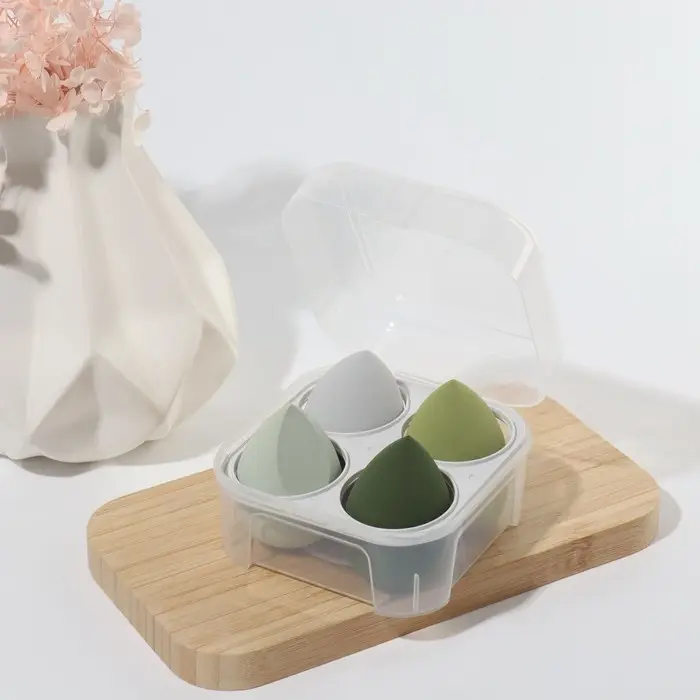Спонжи для макияжа, набор - 4 шт, увеличиваются при намокании, цвет зелёный