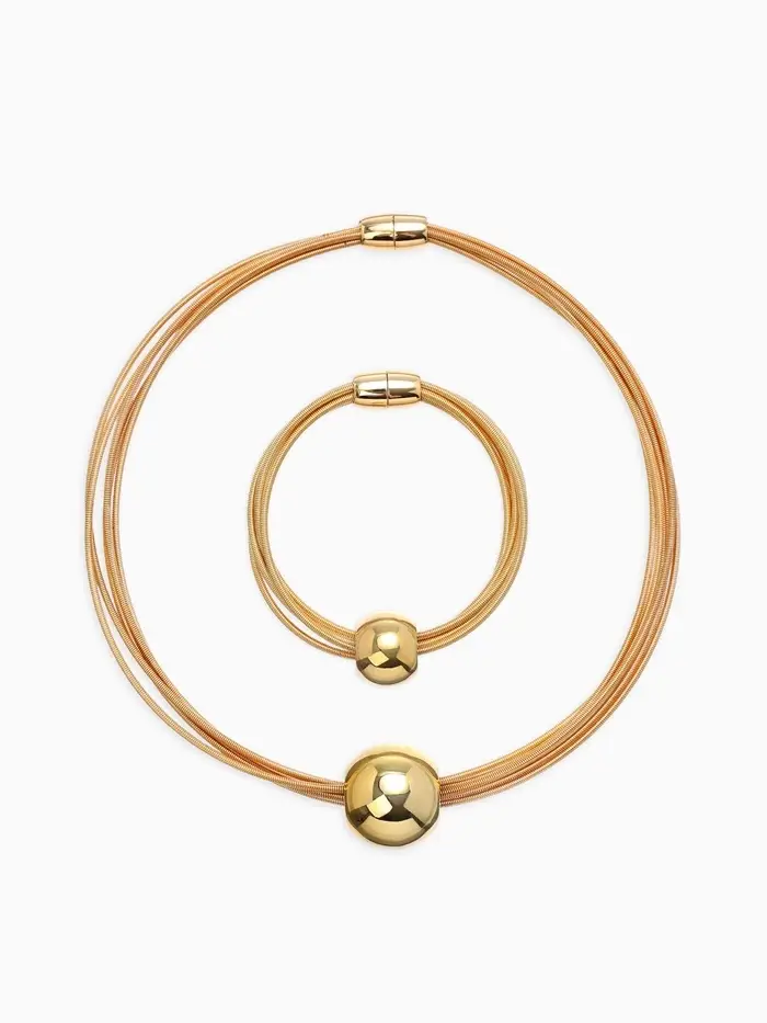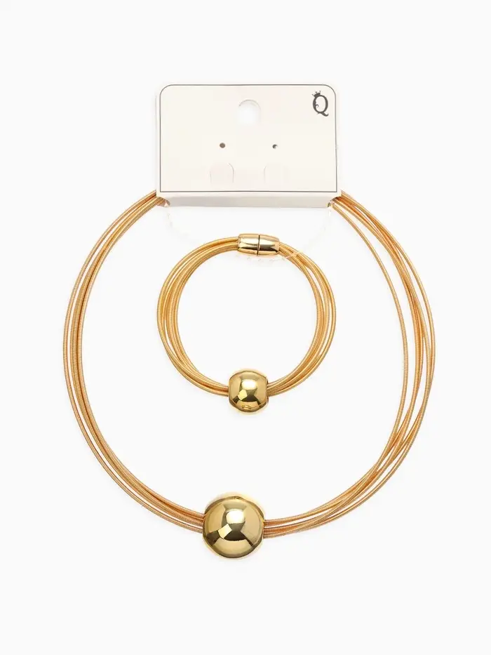 Набор 2 пред-та: колье, браслет "Бусина на нитях", цвет золото