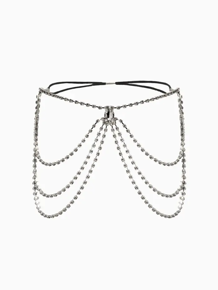 Цепочка на бедро бодичейн "Шахерезада" со стразами, цвет белый в серебре