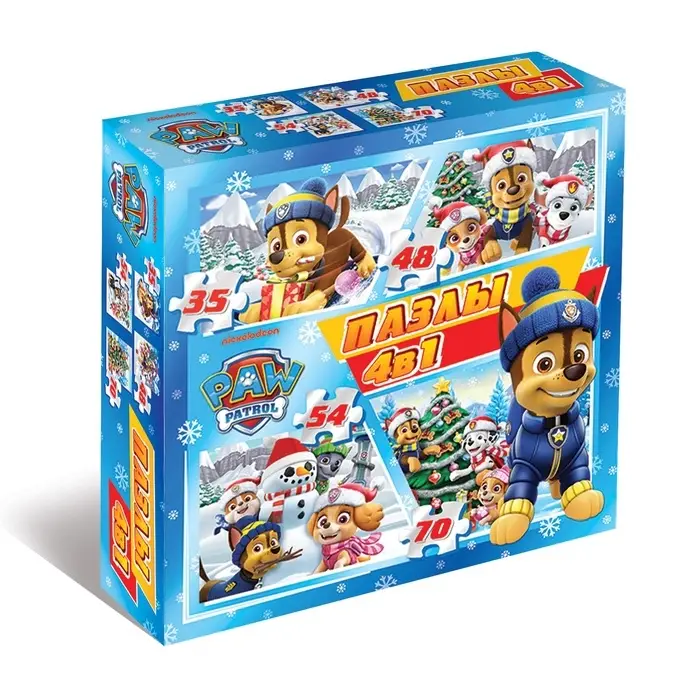 Пазлы 4 в 1, 35, 48, 54, 70 деталей, подарочный набор, Щенячий патруль