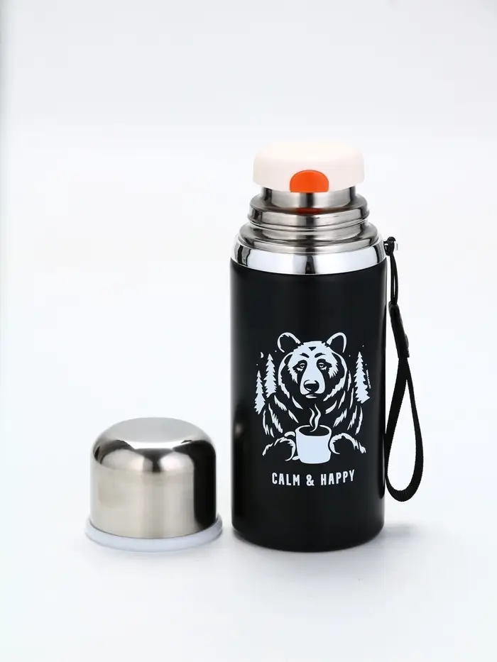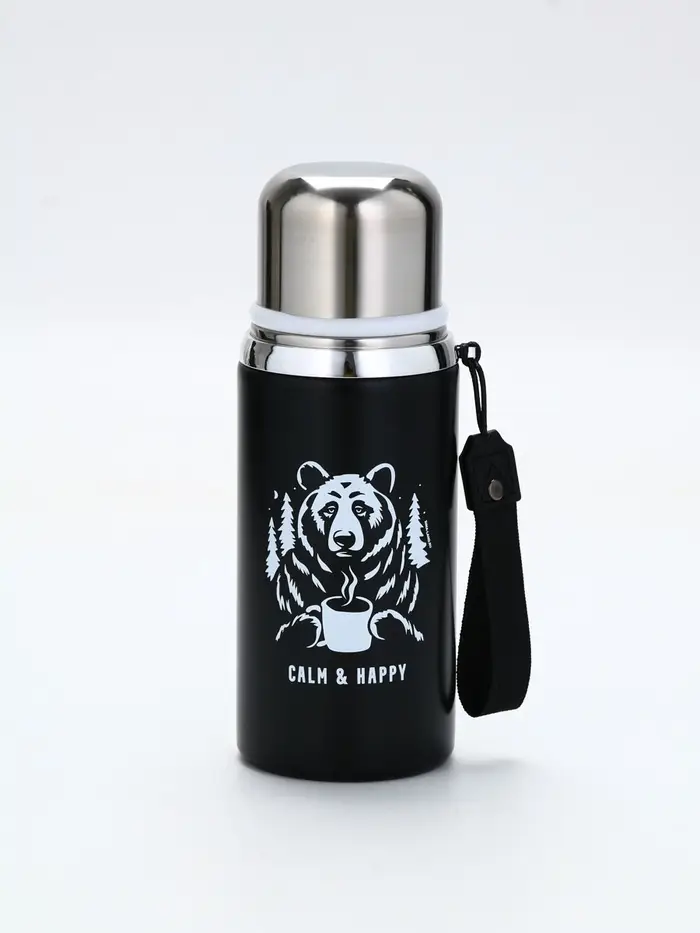 Термос "Calm and happy", чёрный, 600мл